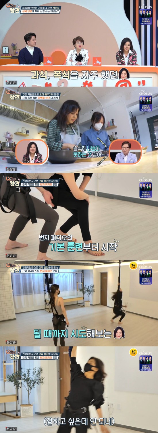 이날 VCR을 통해 장은숙의 건강 생활을 지켜보던 최은지는 근육에 신경 쓰는 장은숙에게 "근육 운동에 힘쓰시는 이유가 있냐"라고 물었다. 이에 장은숙은 "과거에 바쁜 가수 활동을 하면서 식습관이 망가졌다"라며 말문을 열었다.