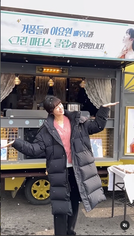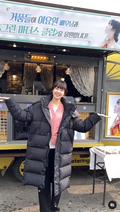 영상 속 이요원은 팬들이 보낸 커피차 앞에서 환한 미소를 짓고 있다.