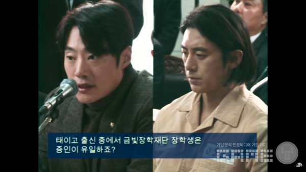 청문회는 정상적으로 진행되지 못 했다. 태이고 출신 정익재의 고향 친구 김낙수 의원(이희준 분)이 '타이토닉사와 금빛장학재단'에 대하여 발언하며 나서기 전까지 정익재가 제대로 된 증언을 하지 않은 것. 의장(이경영 분)또한 김낙수 의원의 '타이토닉'이나 '국제적 음모'와 같은 발언에 대해서는 "월드컵 직전이다", "외교에 타격을 입을 수 있다"라는 이유로 청문회 진행을 방해했다.