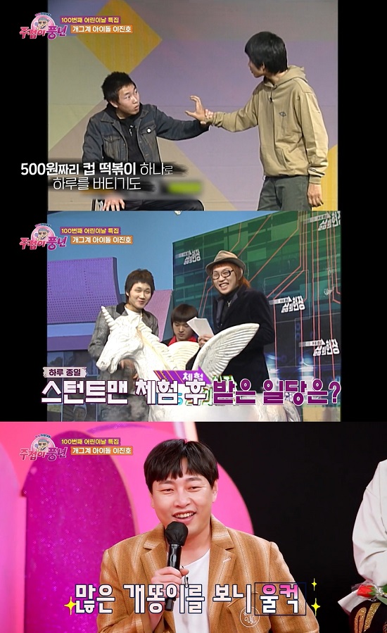 이와 함께 이진호의 힘들었던 과거 일화도 공개됐다. 단돈 1만원을 들고 상경했던 이야기, 500원짜리 컵 떡볶이로 하루를 버티던 이야기 등이 밝혀졌고 열정이 가득했던 무명시절과 신인 때의 자료 화면들이 공개돼 MC진과 팬들을 뭉클하게 만들었다.