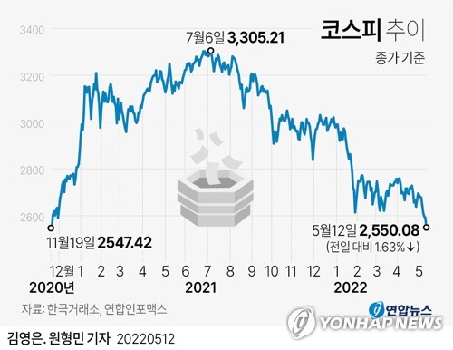 (서울=연합뉴스) 윤선희 기자 = 물가 급등과 금리 인상 우려에 코스피가 2,500대로 떨어지면서 증권사들의 전망이 일제히 빗나갔다.