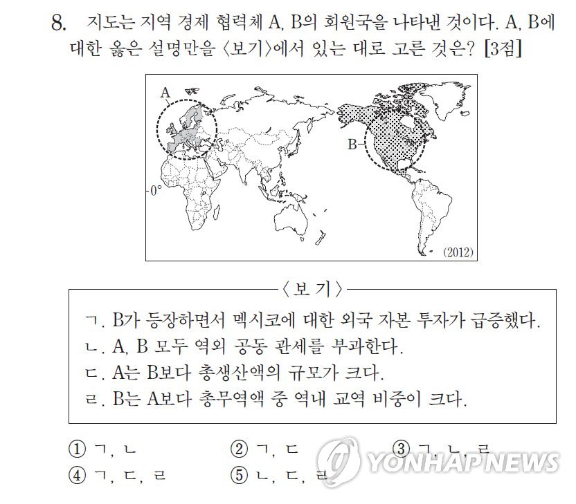 2014학년도 수능시험(2013년 11월 실시)이 치러진 뒤 세계지리 8번 문제에 출제상 오류가 있다는 지적이 제기됐다.