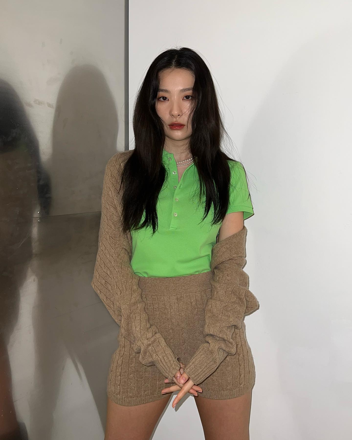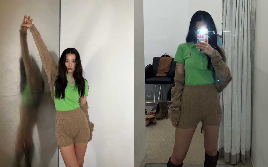 그린 컬러의 카라티로 포인트를 준 슬기는 군살 하나 없는 몸매로 시선을 사로잡았다. 다양한 포즈의 사진을 공유한 슬기의 사진에 팬들은 "슬기라서 가능한 패션인 듯", "허벅지 마른 사람만 입을 수 있는 패션ㅠㅠ" 등의 반응을 보이며 슬기의 슬랜더 몸매에 부러움을 표했다.