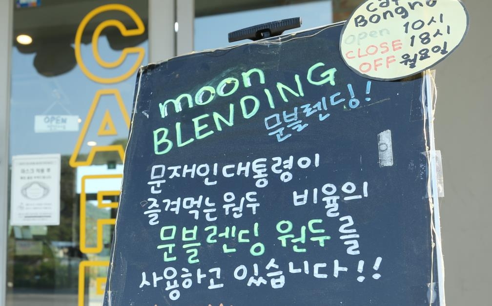 문 블렌딩은 문 전 대통령이 선호하는 것으로 알려진 커피 원두 비율(콜롬비아 40%·브라질 30%·에티오피아 20%·과테말라 10%)을 뜻한다.