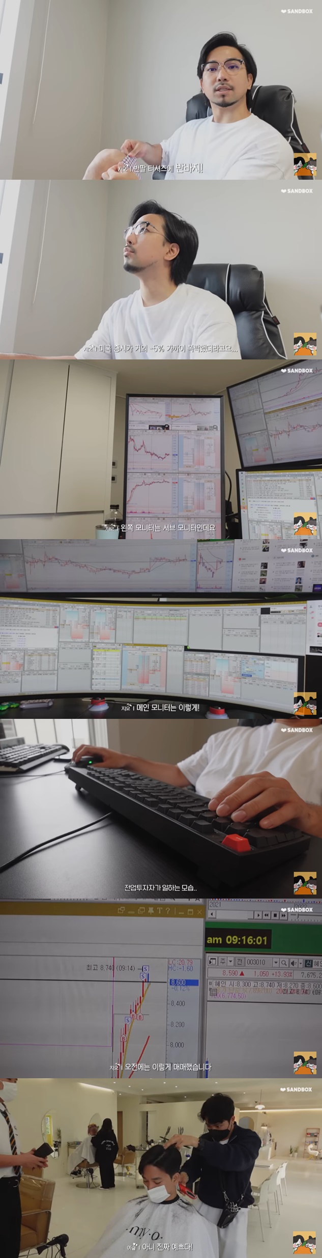 그는 "오전에 이렇게 매매했다"며 그래프를 보여줬다. 점심으로 닭가슴살을 먹고 업무를 이어간 지오는 "사실 힘들었다"며 트레이딩 업무에 대한 어려움을 토로했다. 모니터에서는 연신 "주문이 체결됐다"는 음성이 흘러나왔고, 장 마감과 함께 지오는 업무를 종료했다.