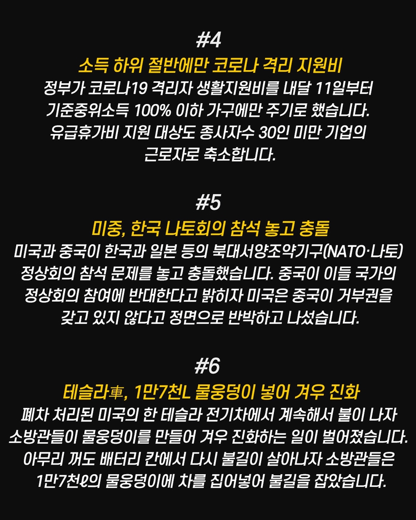 ● 내달 11일부터 소득 하위 절반에만 코로나 격리자 생활지원비[http://www.yna.co.kr/view/AKR20220624028600530]