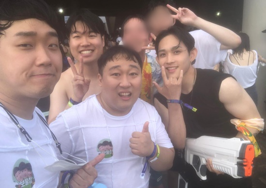 공개된 사진에는 최근 개최된 뮤직 페스티벌 '워터밤'에서 만난 유튜버 보물섬(이현석, 김동현, 강민석)과 인증샷을 남기는 최환희의 모습이 담겼다. 특히 최환희는 민소매의 검은색 티를 입고 우람한 근육질 팔뚝을 자랑하며 남성미를 드러내 눈길을 끌었다.