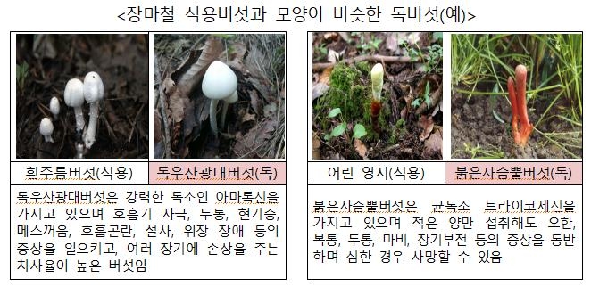 또 대부분의 독버섯 성분은 가열·조리해도 독성이 그대로 남아 있어 '익혀 먹으면 안전하다'고 믿어서도 안 된다고 경고했다.