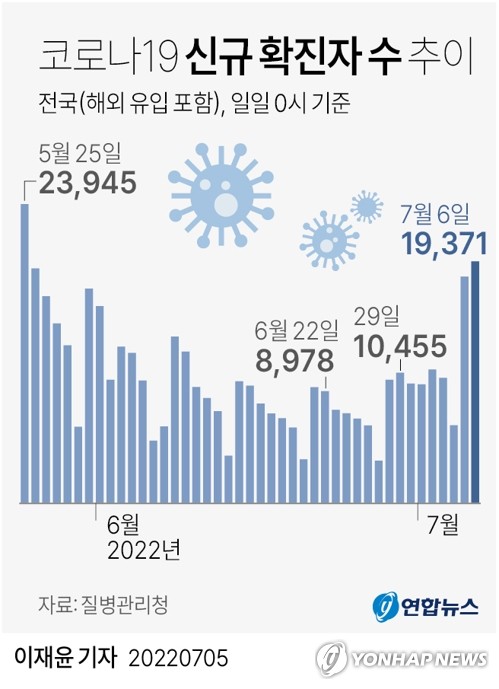 1주일 전(6월 28일) 확진자 595명의 2배에 가까운 수치다.