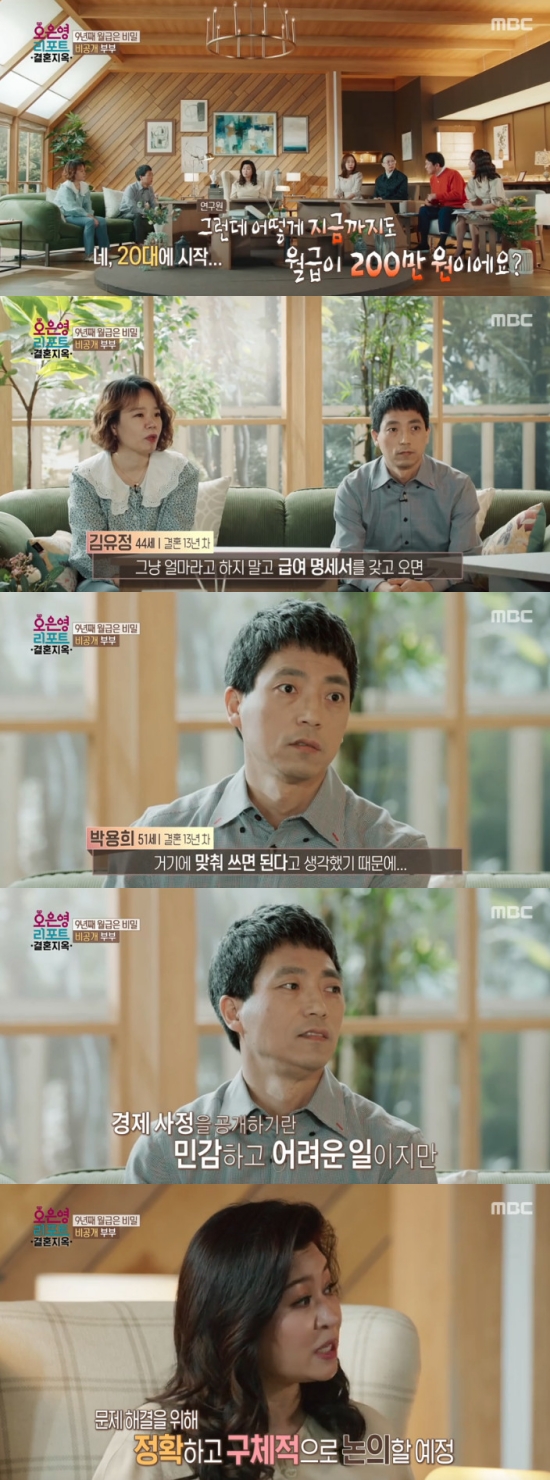 결혼 13년 차 부부인 남편 박용희 씨와 아내 김유정 씨가 등장했다. 박용희 씨와 김유정 씨는 수입을 각자 관리하고 있다고 밝혔다.
