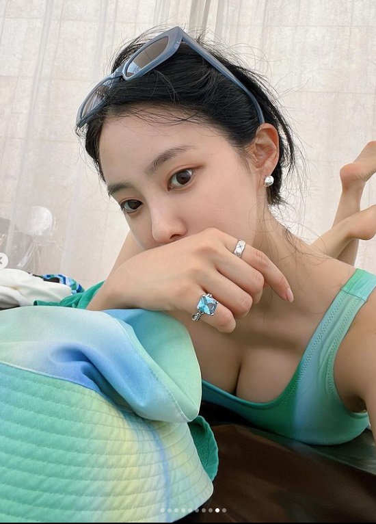 효민, 글래머 몸매 대놓고 자랑…수영 안하고 사진만 찍네