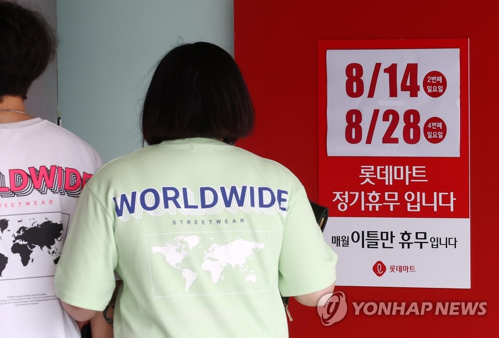 대형마트는 2012년 시행된 영업규제에 따라 월 2회 의무휴업을 해야 하며 자정부터 오전 10시까지는 영업할 수 없다.