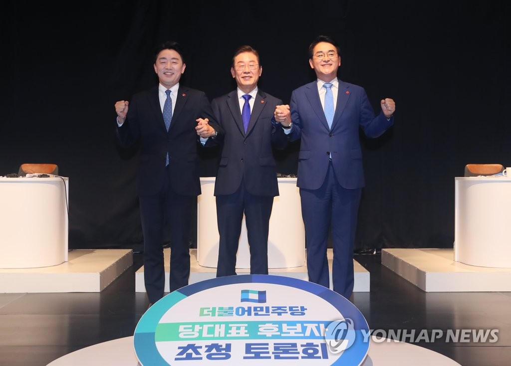 당권 주자 3명(이재명 박용진 강훈식 후보·기호순)은 이날 오전 강원 원주 한라대학교 대강당에서 열린 강원지역 합동연설회에서 나란히 '민주당의 혁신'을 외치며 지지를 호소했다.