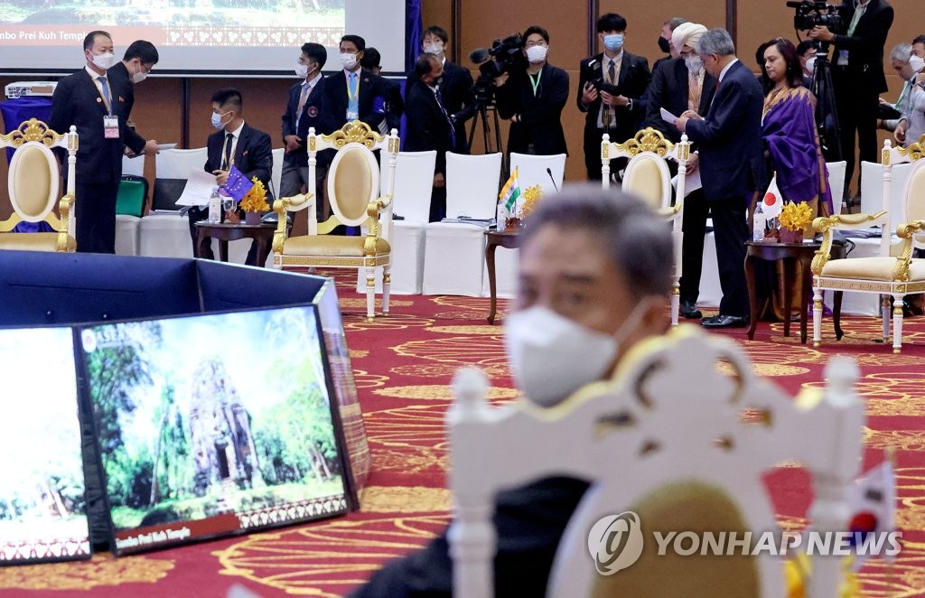 (프놈펜=연합뉴스) 오수진 기자 = 박진 외교부 장관이 북한 안광일 주아세안대표부 대사 겸 주인도네시아 대사를 만나 조건 없는 남북 대화의 필요성을 제안했으며 안 대사는 이에 대해 '여건 조성이 먼저'라는 입장을 밝힌 것으로 알려졌다.