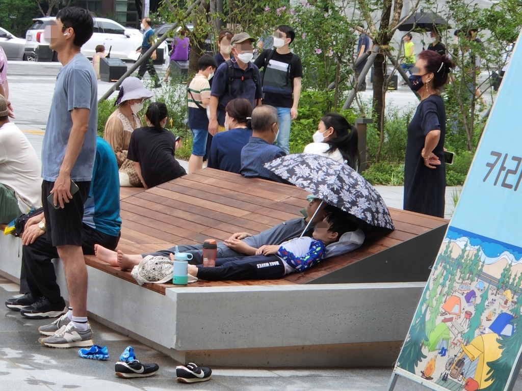 과거 차도였던 곳에 조성된 녹지에서는 시민들이 무더위 속 휴식을 즐겼다. 어린아이들은 '한글분수'와 '명량분수' 등 바닥분수에서 물놀이를 즐겼고, 부모들은 옆에 놓인 의자와 벤치 등에 앉아 이를 지켜봤다.