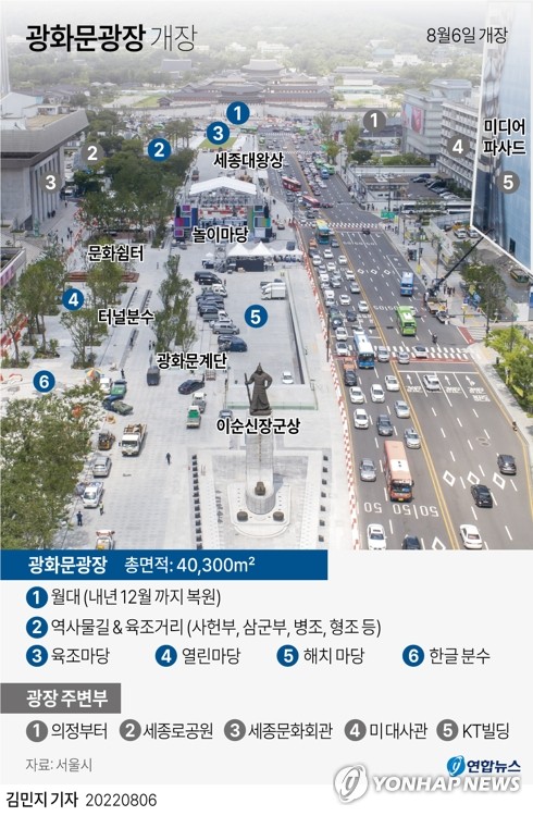 재구조화 이전부터 광화문광장을 자주 찾았다는 김용산(73) 씨는 "매번 공사만 하다가 개장하니 눈이 훤하다"며 "광장 양쪽에 차가 다녔었는데 이제 녹지가 생기니 감회가 새롭다"고 말했다.