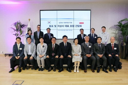 김 의장은 이날 바르샤바 시내 인터콘티넨털 호텔에서 현지 지상사 대표와 한인회를 포함한 동포 대표 등과 만찬을 겸한 간담회도 개최했다.