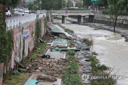 강원 원주시 호저면 산현리에서는 하천 범람으로 다리가 막혀 일대 16가구 주민들이 사실상 고립됐고, 칠봉체육공원 인근 하천 제방 약 100m가 유실됐다.