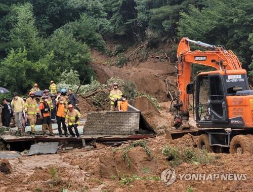 또 경기 화성시 정남면에서도 산사태로 공장 기숙사가 매몰되며 중국인 근로자 1명이 숨졌고, 경기 양평군 강상면에서는 60대 남성이 불어난 물에 휩쓸려 목숨을 잃었다.