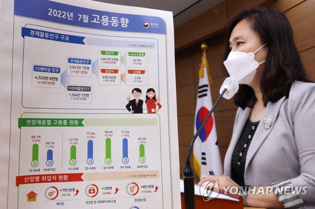 (세종=연합뉴스) 박용주 차지연 김다혜 박원희 기자 = 7월 취업자가 1년 전보다 80만명 넘게 늘었지만, 증가 폭은 두 달째 둔화했다.