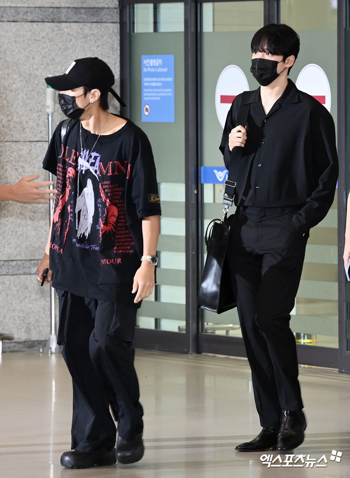 연예>한국 연예에이티즈 우영-윤호 '공항 런웨이'[엑's HD포토]엑스포츠뉴스입력 0 (엑스포츠뉴스 인천공항, 고아라 기자) 23일 오후 그룹 에이티즈(ATEEZ)가 '케이콘(KCON) 2022 LA'를 마치고 인천국제공항을 통해 귀국했다. 에이티즈 우영, 윤호가 입국장을 나서고 있다. 고아라 기자 iknow@xportsnews.com