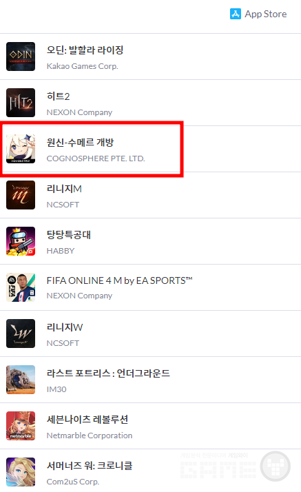 '원신' 3.0 수메르 개방에 애플 매출 3위...순위 상승 시작됐다!