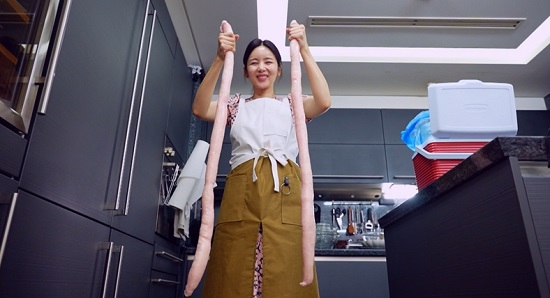 어떤 식재료가 들어 있을지 모두 주목한 가운데 박솔미가 낑낑거리며 흡사 뱀처럼 길고 두꺼운 무언가를 꺼내 놀라움을 자아냈다. 박솔미 본인도 "뱀 요리?"라며 장난기 가득 너스레를 떨기도.
