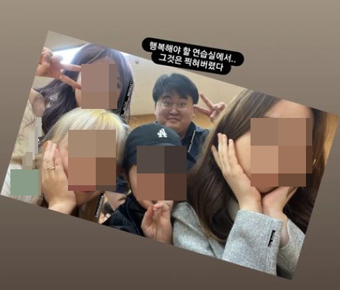 13일 정지웅은 자신의 인스타그램 스토리에 "행복해야 할 연습실에서‥그것은 찍혀버렸다"라는 글과 함께 사진을 공유했다.