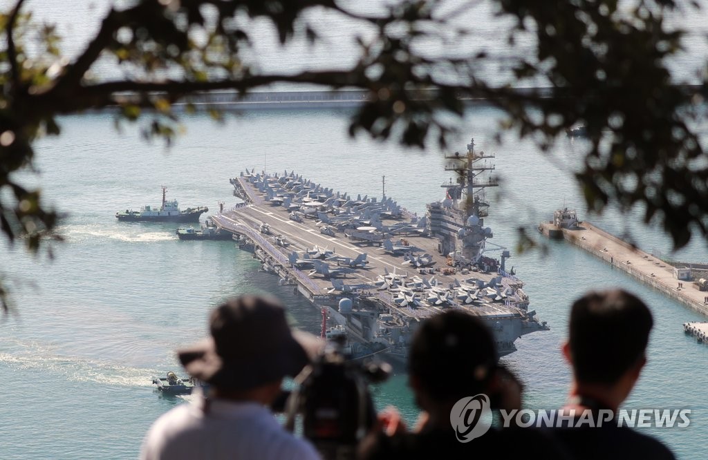 미국 항모가 부산 작전기지에 훈련 목적으로 입항하는 것은 2017년 10월 레이건호 이후 5년 만이다. 이후 국내 입항은 있었지만 훈련 목적은 아니었다.