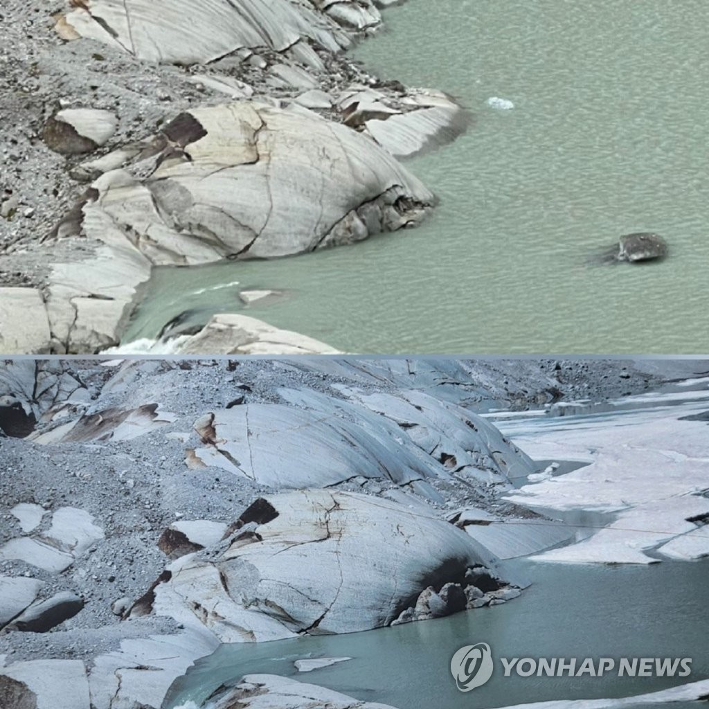 (제네바=연합뉴스) 안희 특파원 = 유럽 전역에 극심한 폭염이 나타났던 올해 스위스 알프스 산악 지대에 있던 빙하가 기존 기록을 크게 뛰어넘는 규모로 소실된 것으로 조사됐다.