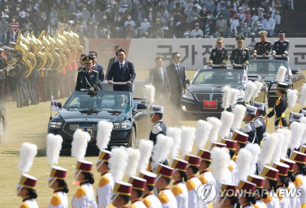 (서울=연합뉴스) 김지헌 기자 = 윤석열 정부의 첫 번째 국군의 날 기념행사가 6년 만에 '국군의 심장부' 계룡대에서 거행됐다.