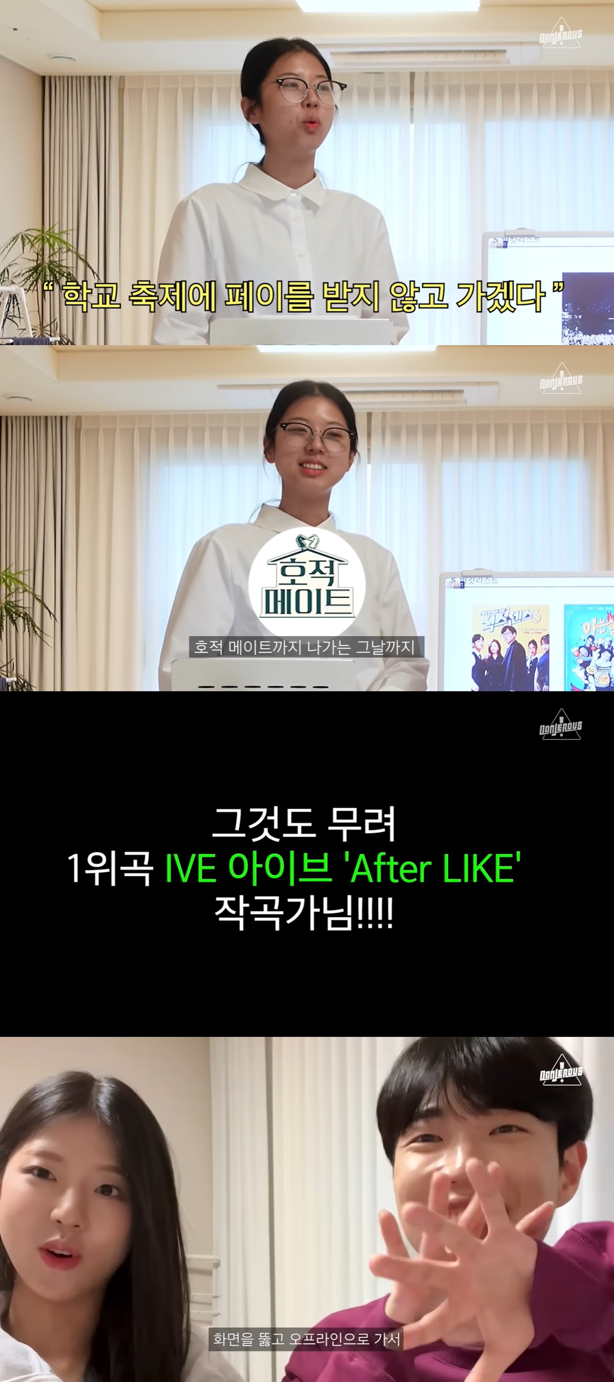 끝으로 두 사람은 아이브(IVE)의 'After LIKE'를 작곡한 작곡가와 만나 데뷔곡 '하이파이브'의 데모곡을 들어보는 시간을 가졌다. 이어 데뷔를 하고 싶었던 이유에 대해 "무대에 서고 싶었다"면서 사람들이 원하는 곳에 가서 자신들의 곡으로 무대를 꾸미겠다고 밝혔다.