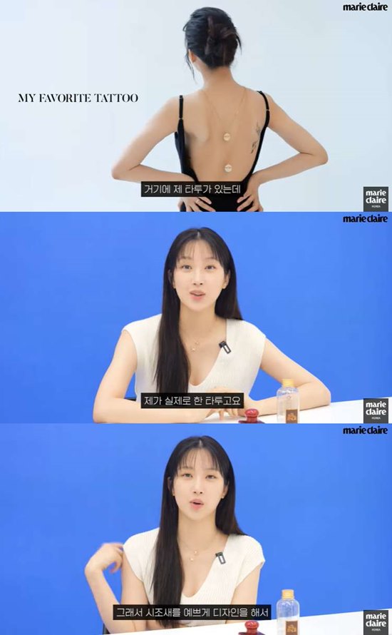 문가영은 지난 20일 마리끌레르 공식 유튜브 채널을 통해 몸에 새긴 타투를 언급했다. 앞서 '2021 AAA 시상식'에 참석했던 문가영은 당시 순백의 드레스를 입고 우아하면서도 세련된 미모를 과시함과 동시에 등에 새긴 타투로 반전 매력을 뽐낸 바 있다.