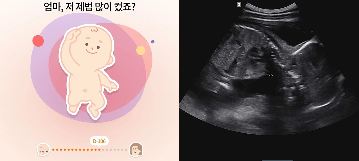 이와 함께 공개된 사진에는 출산 예정일까지 106일이 남았다는 알람과 초음파 사진이 담겼다.