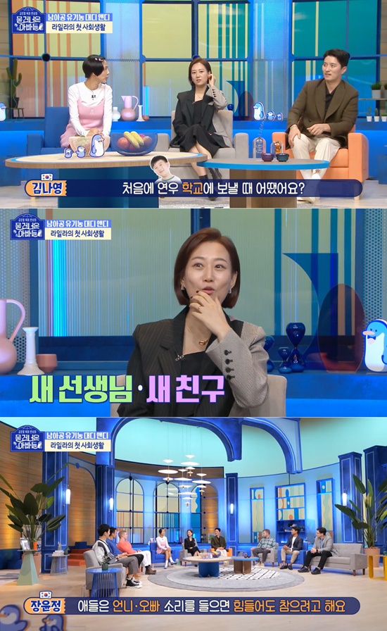 이 모습을 지켜보던 김나영은 장윤정에게 아들 연우 군의 초등학교 입학 당시 어땠는지 물었다. 장윤정은 "제가 약간 설레발쳤다. '우와' '너무 부러워' '새 선생님과 새 친구들 만날 텐데 얼마나 재밌을까'"라며 직접 선보여 웃음을 안겼다.