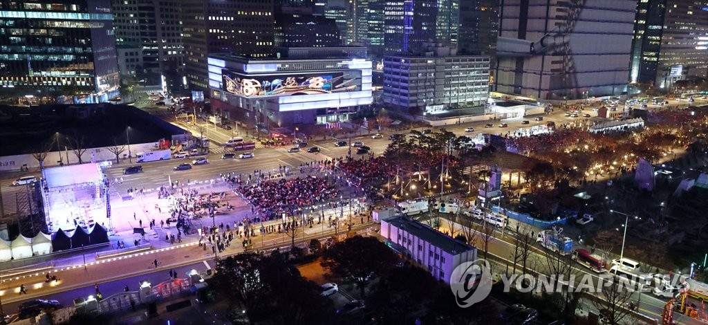 경찰은 이날 점심께 일찌감치 철제 펜스로 광화문광장을 총 5개 구획(섹터)으로 나눠 각각의 섹터에 인원이 분산되도록 했다. 동선이 엇갈리지 않도록 각 섹터별로 입구와 출구를 따로 열었다.