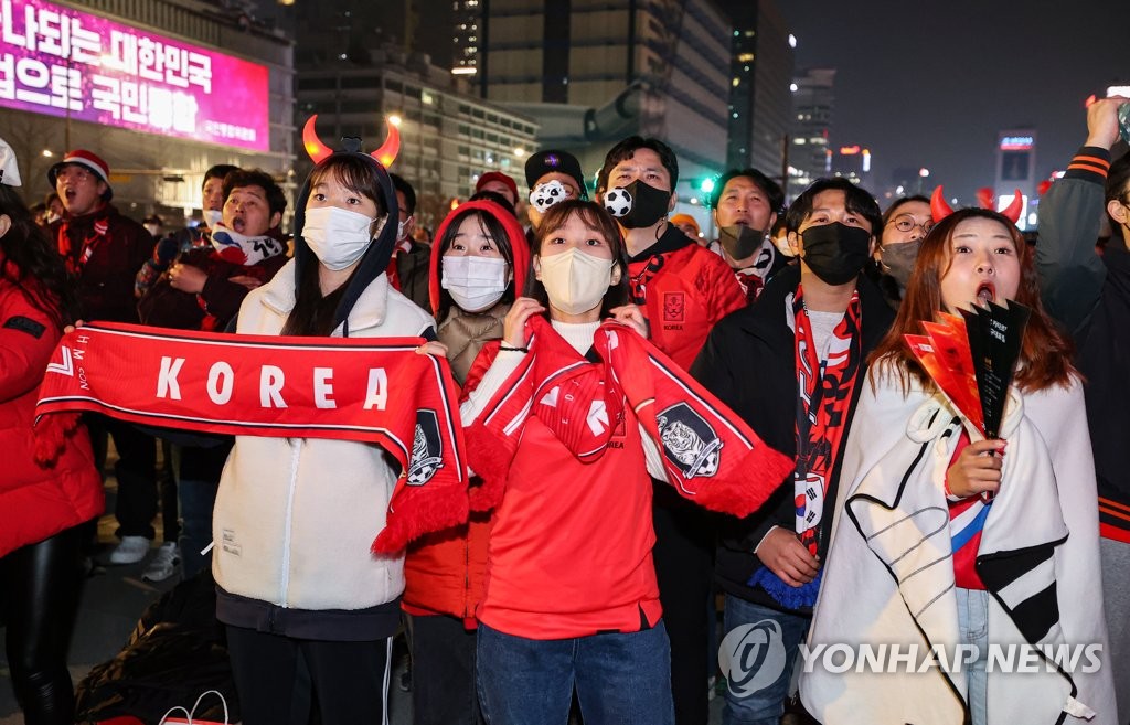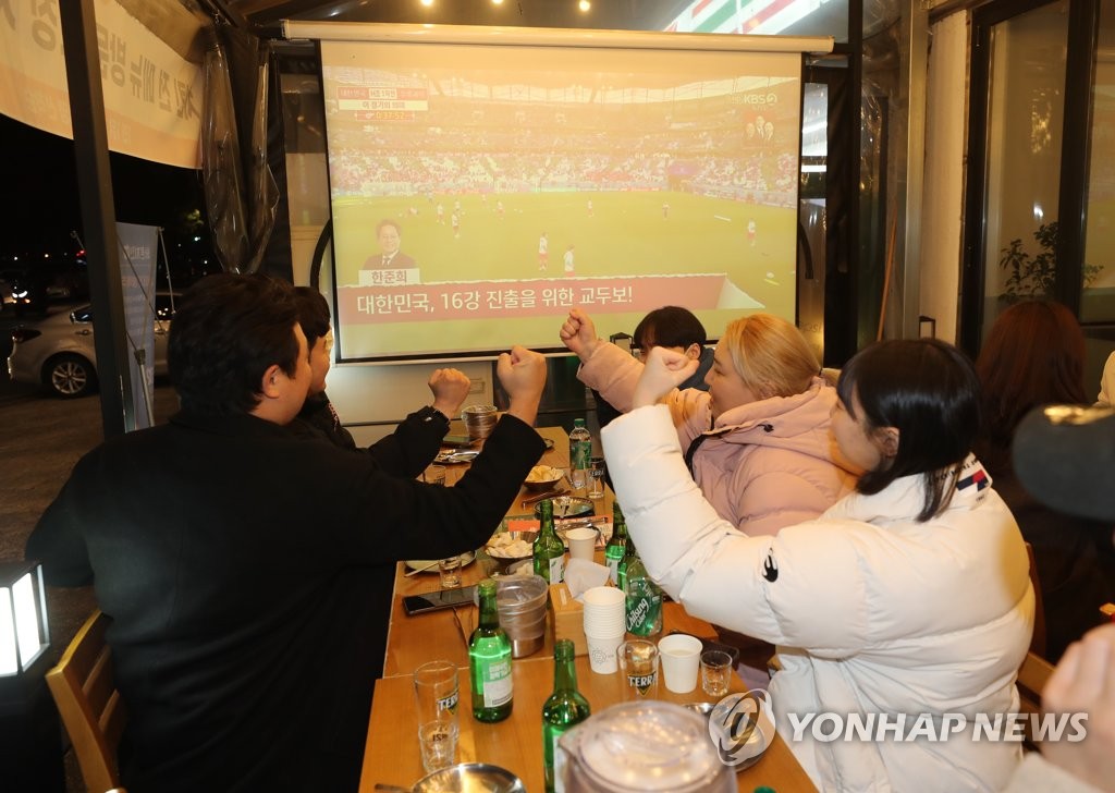 (전국종합=연합뉴스) 한국 축구대표팀의 2022 카타르 월드컵 첫 경기가 열린 24일 밤 전국 곳곳에서 '대~한민국' 함성이 울려퍼졌다.