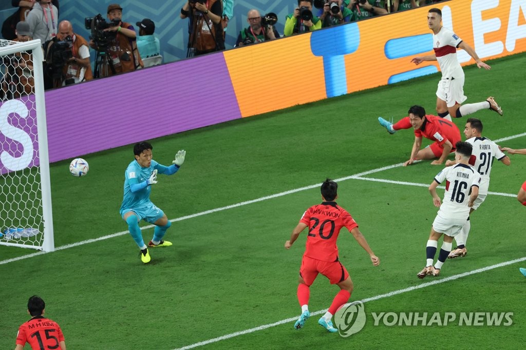 스포츠>스포츠 일반[월드컵] 한국 0-1 포르투갈(전반 5분·히카르두 오르타)연합뉴스입력 0 (알라이얀=연합뉴스) 김주성 기자 = 3일 오전(한국시간) 카타르 알라이얀의 에듀케이션 시티 스타디움에서 열린 2022 카타르 월드컵 조별리그 H조 3차전 대한민국과 포르투갈 경기. 전반 5분 포르투칼 히카르두 오르타가 득점을 하고 있다. 2022.12.3 utzza@yna.co.kr (끝)<저작권자(c) 연합뉴스, 무단 전재-재배포 금지>