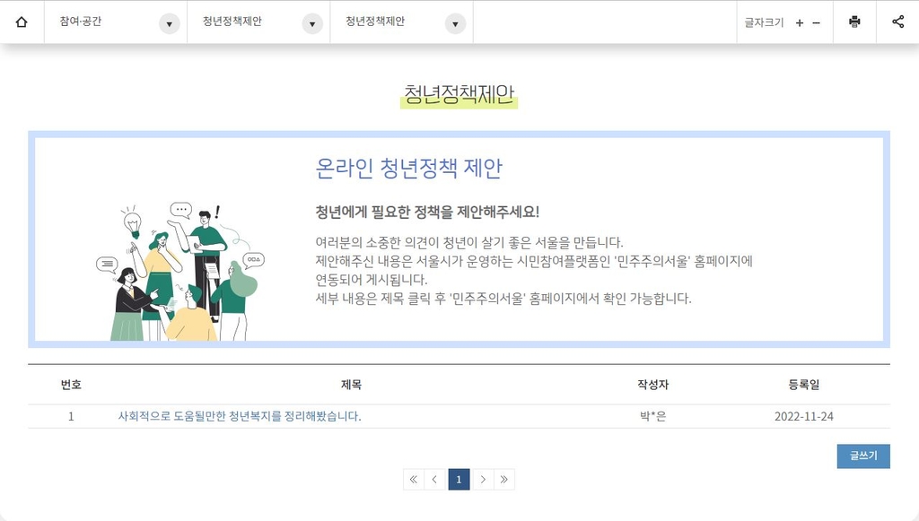[게시판] 서울시 온라인 청년정책 제안창구 명칭 공모