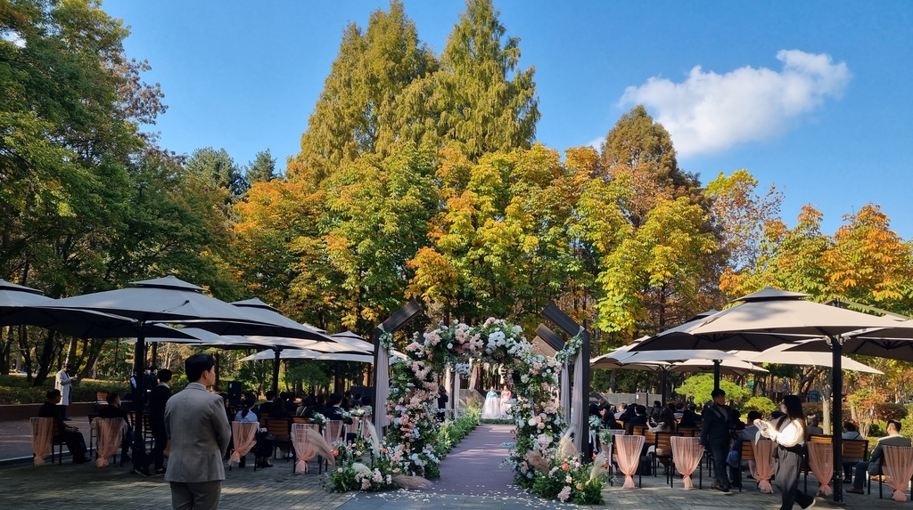 ▲ 서울시는 내년 상반기 매헌시민의숲 공원에서의 야외 결혼식을 희망하는 예비부부 13쌍을 모집한다. 예비부부 중 한 사람이 서울시민 또는 서울시에 직장을 둔 시민이면 신청할 수 있다. 접수 기간은 12월 26∼29일이다. 자세한 사항은 서울시 홈페이지(seoul.go.kr)의 고시·공고 게시판에서 확인할 수 있다. (서울=연합뉴스)