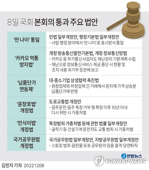 본회의에서는 또 지난 10월 발생한 카카오 서비스망 장애 사태와 관련, 유사 사고의 재발을 막기 위한 일명 '카카오 먹통 방지법'도 통과됐다.