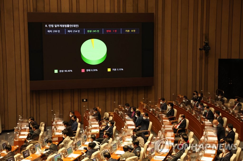 국회는 8일 본회의에서 만 나이 사용을 명확히 규정한 민법 일부개정안과 행정기본법 일부개정안을 의결했다. 개정안은 공포 6개월 뒤 시행된다.