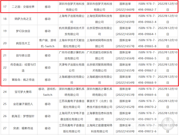 중국 사이트내 공개된 판호 공지의 번호를 확인하면 7번 ‘로스트아크’, 17번 ‘제 2의나라’, 21번 ‘그랑사가’, 22번 ‘샵타이탄’, 23번 ‘메이플스토리M’, 29번 ‘에픽세븐’, 39번 ‘A3: 스틸얼라이브’인 것을 확인할 수 있다.