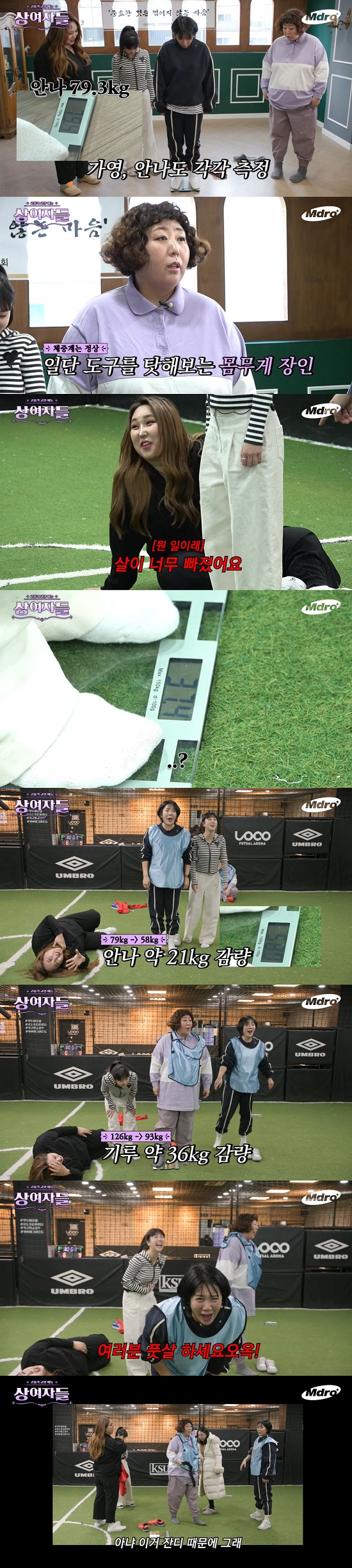 이날 신기루와 허안나, 김가영, 풍자는 다이어트를 위해 요기, 풋살 등 운동을 시작했다. 제작진은 운동 전 체중계를 건넸고 신기루는 126.1kg을. 가영은 51.7kg, 허안나는 79.3kg임이 밝혀졌다.