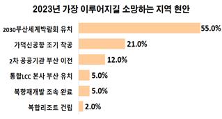 조사에 따르면, 2023년 가장 소망하는 지역 현안으로 응답 기업인의 55.0%가 '2030 부산 세계박람회 유치'를 꼽았다.