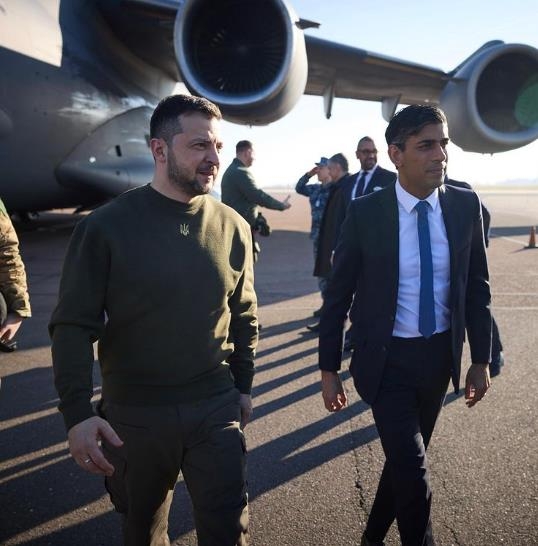 젤렌스키 대통령은 소셜 미디어에 "영국은 우크라이나를 처음에 도와준 나라 중 한 곳이다. 영국인들의 지지와 수낵 총리의 지도력에 개인적으로 감사하기 위해 런던에 왔다"고 말했다.
