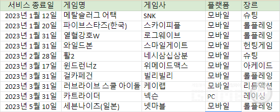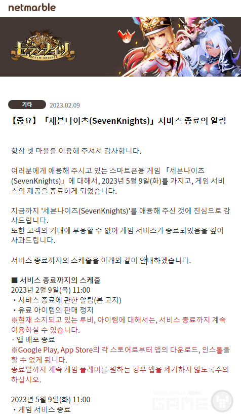 ‘세븐나이츠’에서 '걸카페건'까지...2023년 서비스 종료 게임