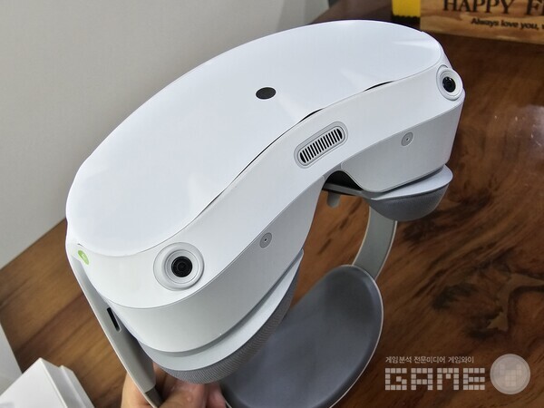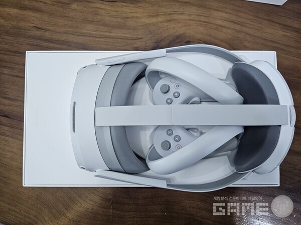 박스 개봉은 좌우측 내용물을 밀어내는 방식이다. 그리고 뚜껑처럼 박스를 열면 본체와 컨트롤러가 나타난다. 위에서 보면 꽤나 길쭉한 모습이다. 위에서 본 모습은 헤드셋이 컨트롤러를 길게 감싸고 있는 형태다. 박스를 밀어서 꺼내는 것도 그렇고, 다시 뚜껑을 열고, 또 다시 다른 박스를 꺼내서 오른쪽으로 뚜껑을 여는 독특한 방식의 박스 포장은 다른 기기에서는 경험하지 못한 색다른 방식이다.