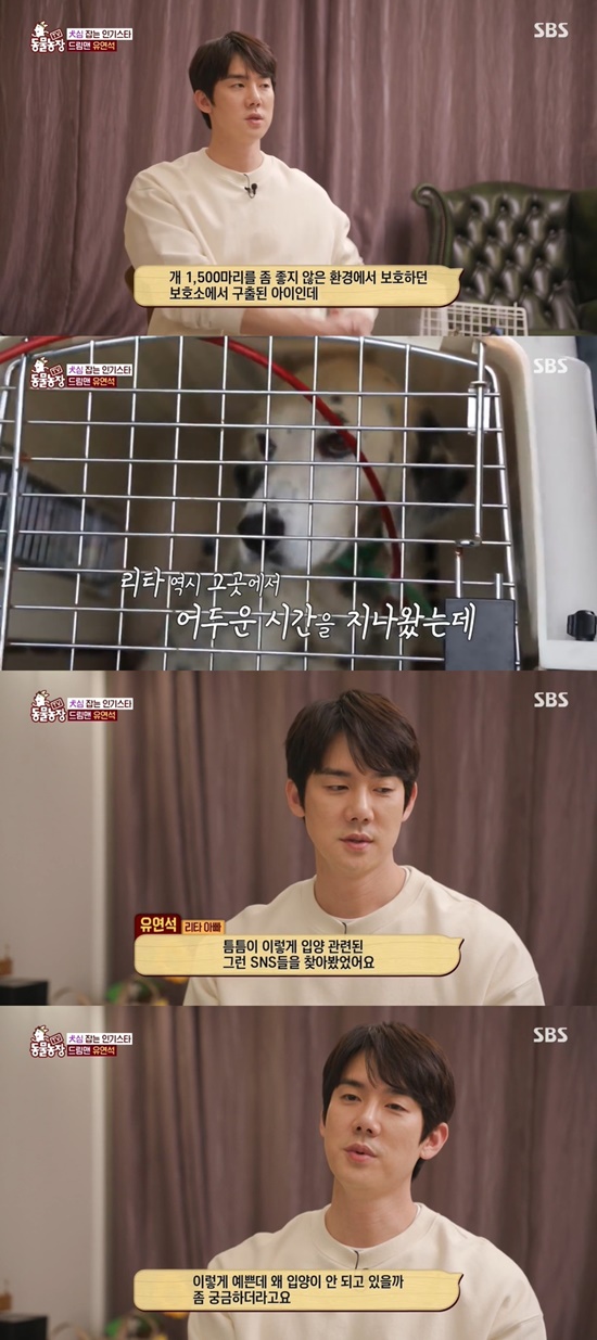 이날 스스로를 '리타 아빠'로 소개한 유연석은 "리타같은 경우는 예전에 개 1500마리를 좋지 않은 환경에서 보호하고 있던 보호소에서 구조된 아이"라고 소개했다.