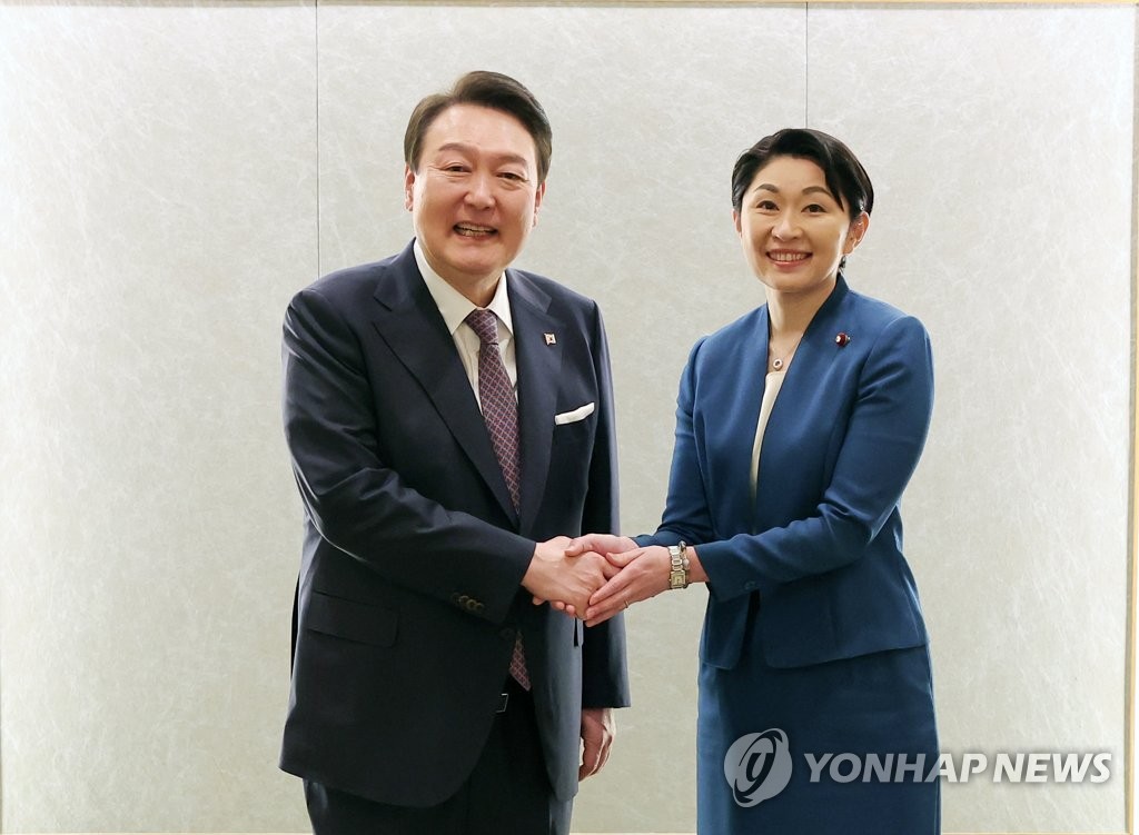 대통령실 관계자는 이 같은 대화를 전하며 "양자 회담에서 상대국 국기 색의 넥타이를 매는 관례를 고려, 한국 측은 붉은색 계통의 넥타이를, 일본 측은 푸른색 계통의 넥타이를 각각 착용했다"고 설명했다.